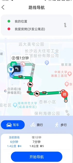 2、不管是驾车、步行或是骑行出行,系统都会依据不同的出行方式。