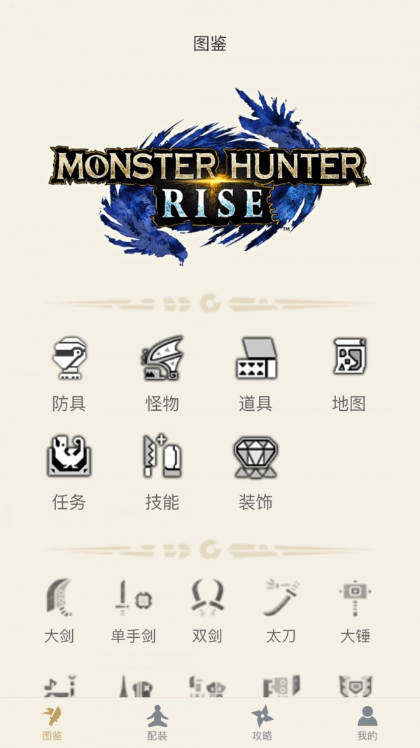这里提供全面的游戏数据,涵盖武器、防具、怪物、道具、地图、任务、技能、装饰等各类数据,另外还有实用的配装器可供使用哦