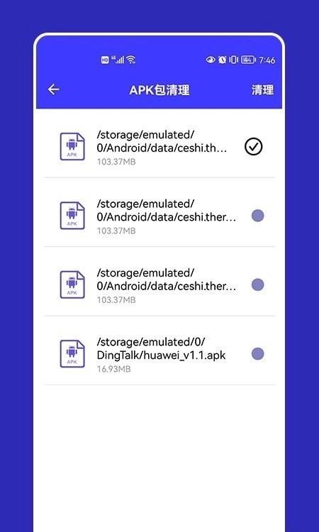 apk文件清理具备十分强劲的垃圾清理能力,只需一键操作就能清除无用垃圾,释放手机内存空间,让手机运行更顺畅。此外,它还能清理手机里的聊天数据,把聊天软件中没用的聊天记录和图片删掉,为用户们带来了相当优质的清理服务。要是这款软件能帮到你,那就赶快试试吧!