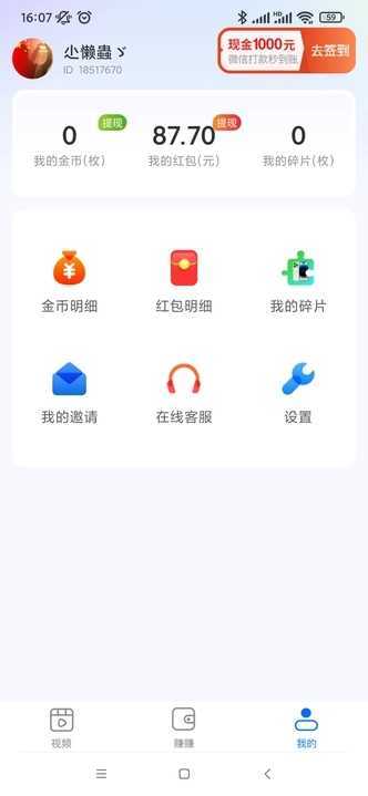 2、边刷边赚钱,看视频边赚钱,1元就能提现。