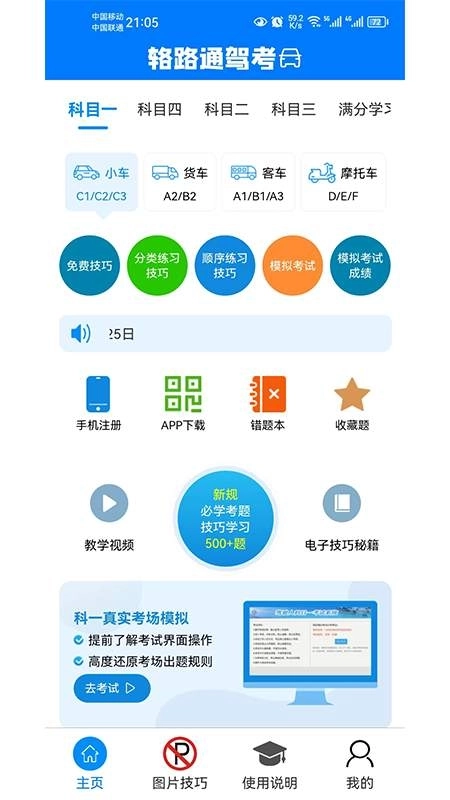 辂路通驾考是一款提供了全面驾考知识的备考软件,这里拥有科一以及科四的理论知识,为大家带来了海量题库资源,通过刷题的方式来备考,可掌握重难点,还有免费技巧等你来学习,更有科目二以及科目三的学车视频,快速掌握技巧,让大家更快通过考试!