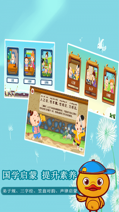 许愿鸭识字手机版是一款专注于学习教育的专业软件,拥有海量汉字资源与教学课程,助力孩子提升识字水平,轻松积累语言知识。软件界面简洁易操作,不仅提供丰富的学习素材,还设有复习测试、儿童故事等特色功能,让孩子在欢乐的氛围中开发智力。用户可随时挑选各类汉字启蒙内容进行学习,使在线识字变得更加轻松便捷。