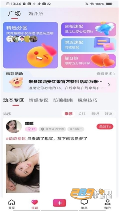 4、征婚页面上有各种各样的活动,您可以参与进去,寻找和您志同道合的伴侣。另外,您也能在这里发布动态,分享自己的生活日常,吸引更多网友的目光。