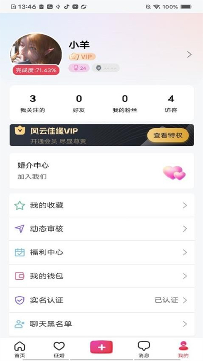 5、进入个人中心后,您能便捷地查看自己关注的对象、好友、粉丝以及访客的相关信息,对社交圈进行管理,从而让交友过程更加顺畅自如。