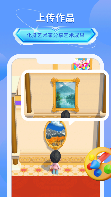 1、安装最新版的“我的艺术世界”后,你能够上传自己的作品,定制专属的房间布置,还可以借助它来展现你的创意与个人品牌。