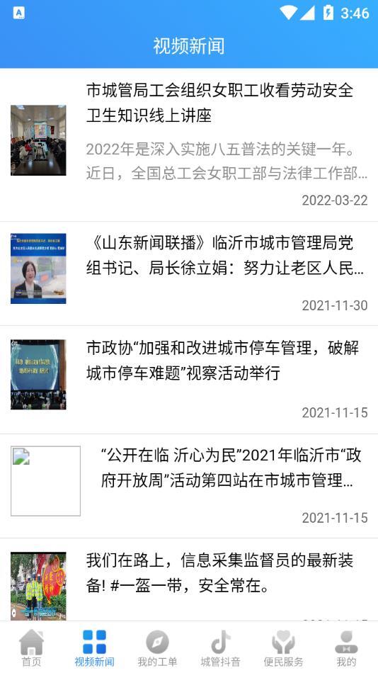 视频新闻板块:呈现上传至“临沂城市管理”抖音号的内容、展现城市管理领域的视频,或是实时动态更新当日所有上报问题的处理进展。