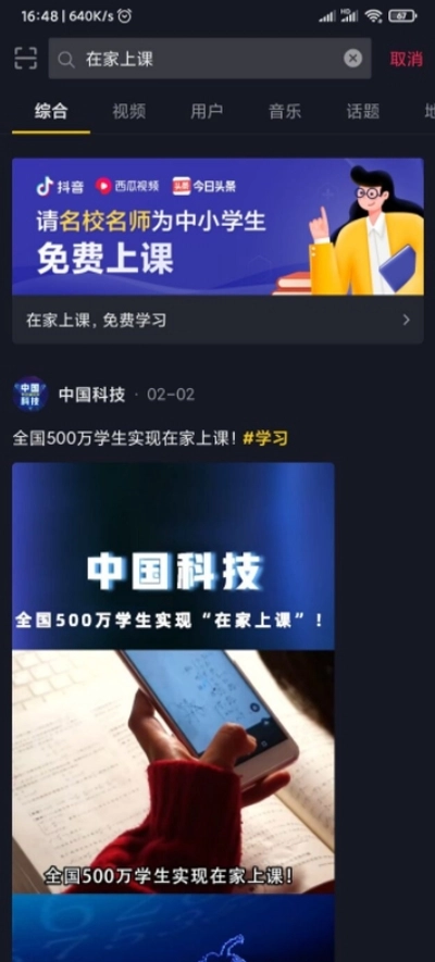 打开抖音搜索“在家上课”