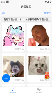 《开团社区》里的表情包数量不少,感兴趣的用户可以亲自去体验一番,每一个都挺有意思的。大家能把这些表情包资源都拿到手,还能和朋友们一起互动分享。软件里的图片资源每天都会更新,这样你就总能用上新表情包了。要是想自己动手做表情包也完全可以,里面有大量素材都是免费提供给用户使用的。