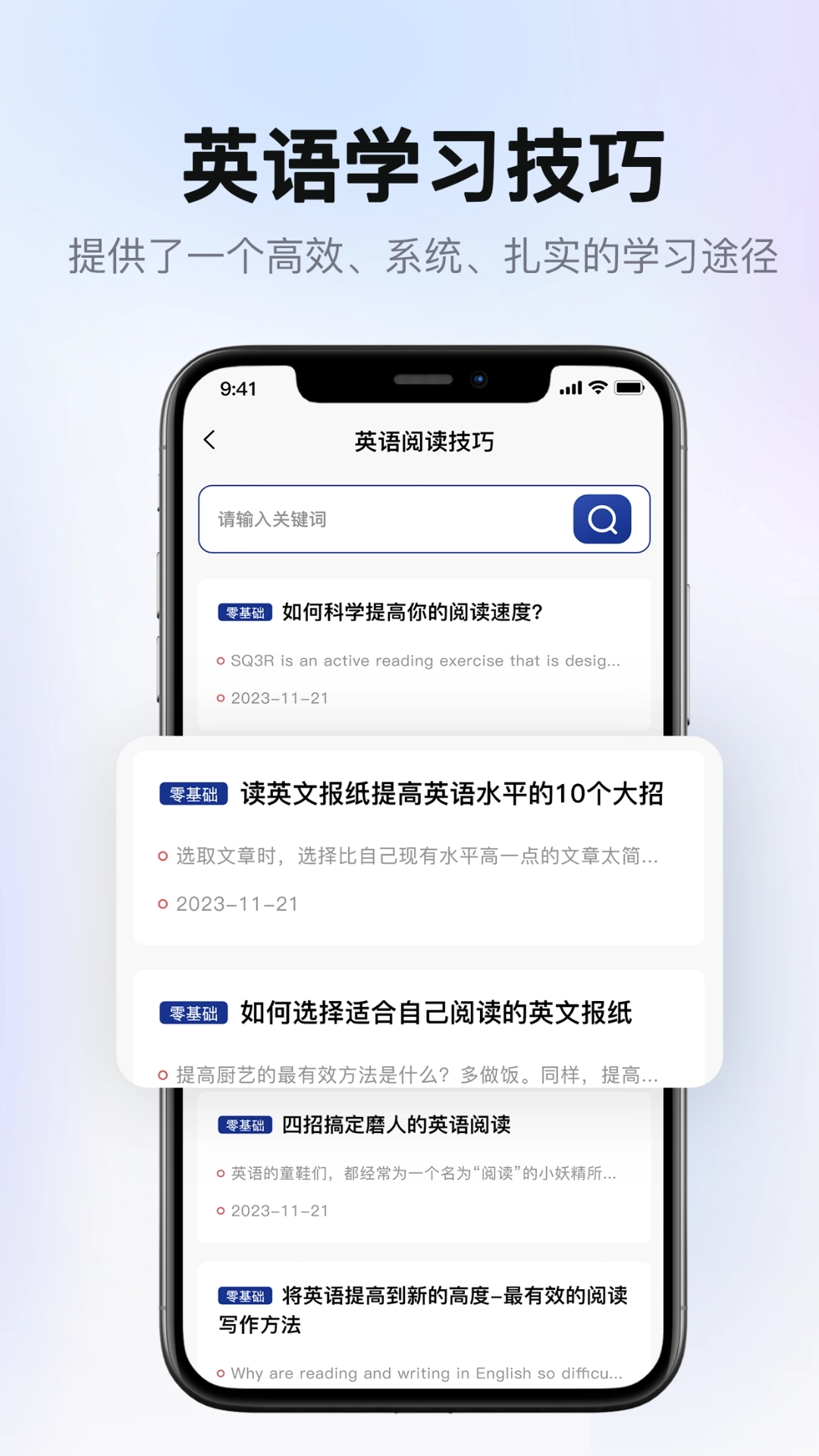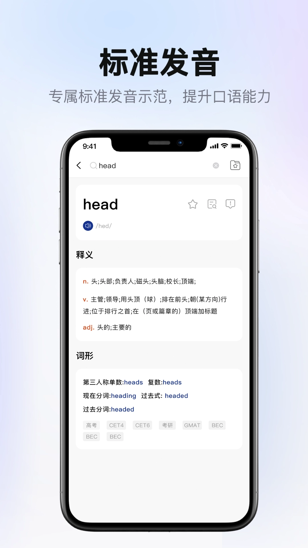 2、真人发音功能,助力用户更精准地把握单词发音,增强口语水平。