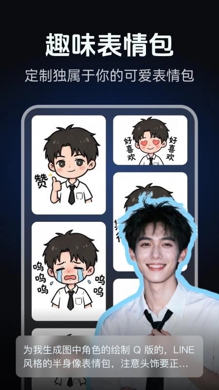 1、帮助你快速的生成对应的Q版表情包,用户就可以拥有更可爱、更有趣的表情包效果。