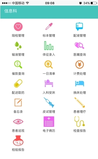 如图所示,您登录后点击下方的功能选项,就能看到易护士的所有功能,可根据自身需求选择使用!
