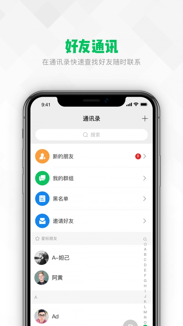 3、在亿迅,沟通无隔阂,通过通讯录能快速找到好友并随时保持联系