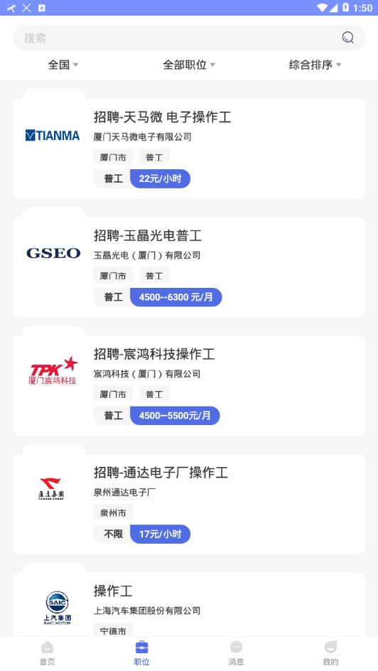 3、覆盖全国大部分城市,帮你匹配周边的工作岗位,让你就近入厂,不必承受思乡的煎熬