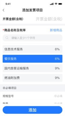 4、进入开具发票页面后,依次填写发票类型、项目名称、金额和税率等信息,随后点击页面底部的按钮,就能生成发票二维码。