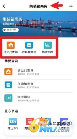 2、成功登录后,你会看到集装箱服务模块,点击“进出门查询”或“物流跟踪”功能,即可立即查看详细信息。