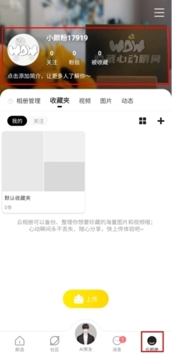 1、在云相册页面中点击背景图;