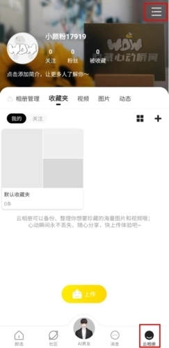 1、在云相册页面中点击右上角的三按钮;