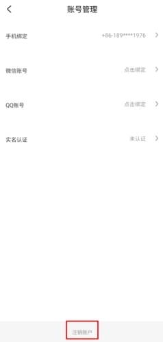 4、进入账号管理页面后,找到页面最下方的注销账户按钮并点击即可。