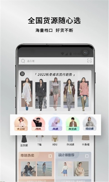 2. 查询市场货源,既能为更多服装销售从业者提供时尚资讯,又可支持其开展产品采购工作。