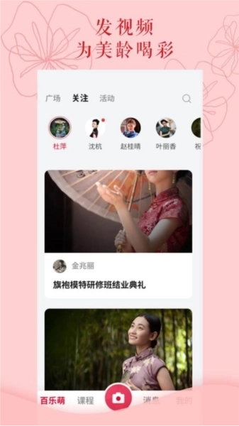 百乐萌是杭州百乐萌文化科技有限公司为旗袍秀爱好者打造的社交平台,用户可通过它在线观看旗袍相关视频课程,助力提升旗袍走秀水平。平台上还能结识志同道合的伙伴,一同参与线下课外活动与各类比赛,广交好友。若你感兴趣,不妨体验一番! 它还是专为中老年人学习打造的综合性服务软件,涵盖广场舞、旗袍模特走秀、瑜伽、声乐等优质课程,中老年人可依据兴趣查找并选择心仪课程,加入在线课程与专业名师互动答疑,学习专业知识,丰富生活。用户也能在线报名参与精彩活动,展示个人能力,高效打发闲暇时光;此外,百乐萌手机版设有便捷的交流社区,支持发布短视频或图文记录生活,与其他用户聊天互动、分享学习经验,帮助中老年人拓展朋友圈。