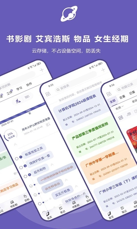 您的日程记录、笔记内容直接保存到阿里云服务器中,不占用您设备存储空间,同时您可以多台手机或其他设备访问使用,不用担心更换手机设备的问题。数据更安全,使用更方便。