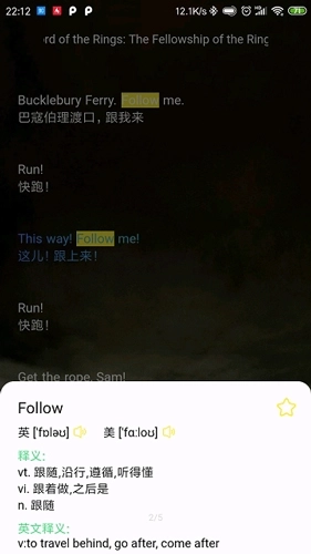 【即时查询】碰到不认识的单词,只需点击一下就能查看释义、发音和英文解释,并且支持一键收藏!