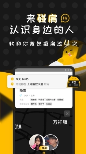 碰肩是一款基于用户实时地理定位的轻松真社交产品。