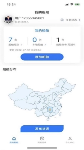 路歌管船宝可提交各类船舶的详细信息,完成相关船舶的添加操作,并对船舶状态进行管理。