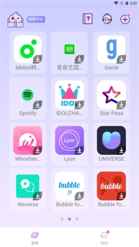 点击“空间”页的应用图标,即可直接。