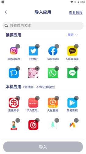 支持在应用内导入本机应用,生成多个应用分身。