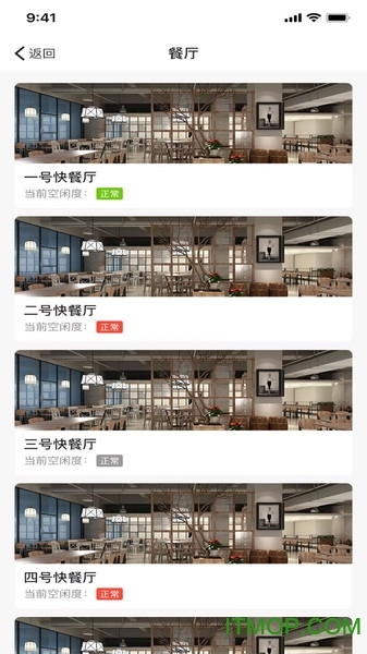2、能够实时查看各餐厅的空闲情况,可选择空闲度较高的餐厅进行堂食。