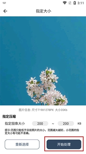 指定压缩:指定一个照片大小范围对照片进行压缩。