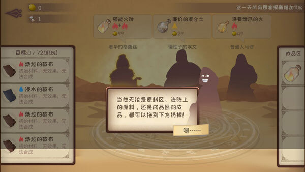 炼化成功后,你就能把成品区里的成品交付给顾客,订单也就完成了。另外,不管是炼金原料区的材料、法阵上的原料,还是成品区的成品,都可以拖到游戏屏幕下方丢弃。还有,顾客是有等待时间的,每个顾客都有自己独特的特性,要是想查看具体属性,长按顾客就能看到。