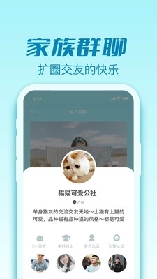 3、【同频】你能够创建或者加入家族群,与同频的伙伴聊天互动、结交朋友,一同开展活动。