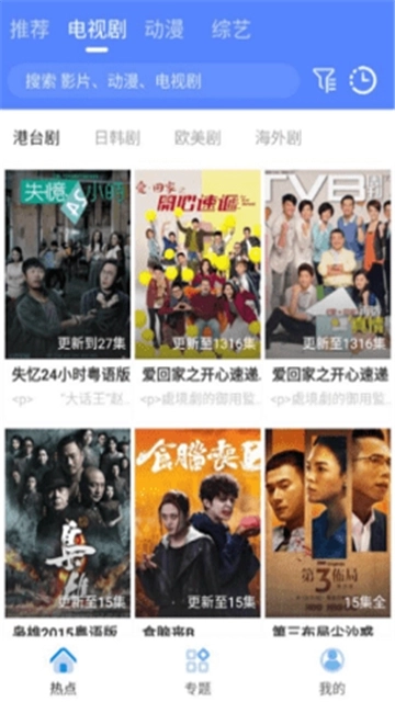 港剧屋软件汇集了香港电视剧的各种类型和题材,包括爱情、家庭、喜剧、动作等。不仅有最新更新的剧集,还有经典的老剧,让用户可以一次性满足不同口味的需求。无论你是喜欢追剧还是重温经典,都能在这里找到心仪的剧集。