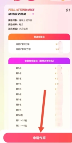 4、进入作家福利页面,点击【申请作家】。