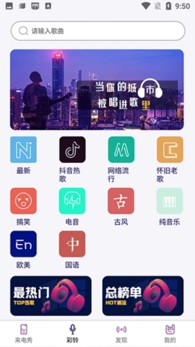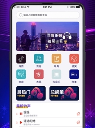 热门歌曲铃声、彩铃(炫铃),每日更新曲库超全,只要你想得到,在这里就能找得到;