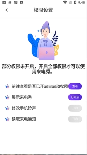 3、点击“设置为来电秀”,开启手机的自启动权限,就能完成设置啦。