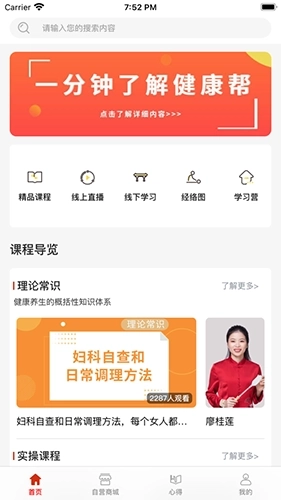 3、平台涵盖丰富多样的课程内容,其中包括健康养生相关资讯、常见亚健康问题的自我检测以及调理方法等。