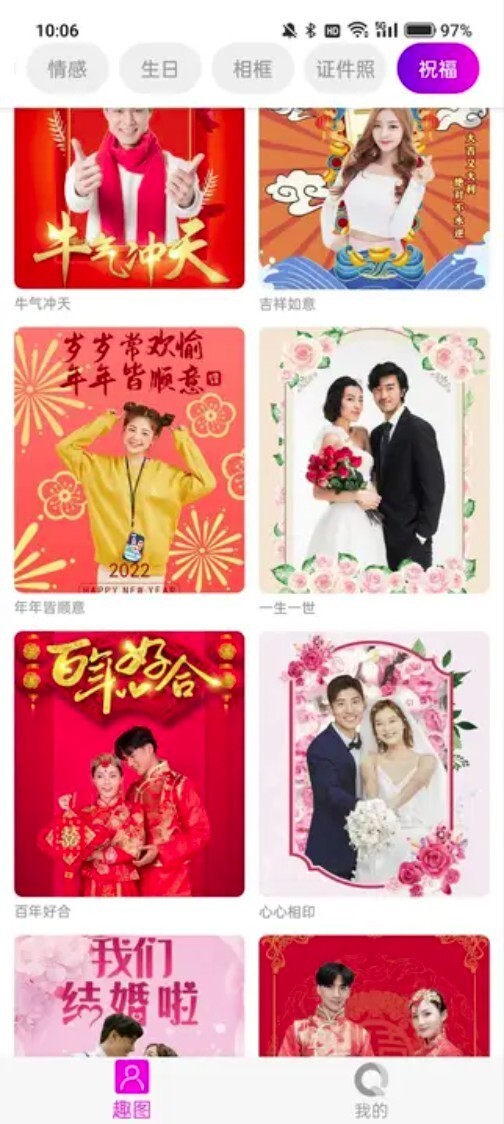 4、节日主题模板丰富多样:覆盖春节、元宵、中秋等各类节日主题,可自动融入节日元素与装饰文字,助力用户快速制作出精美的节日贺图。
