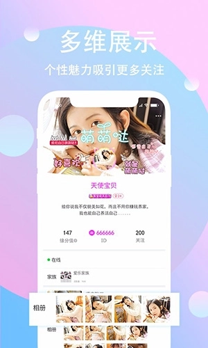 1、每个人的主页都支持多维度展示,家族、相册、关注、缘分值等内容都包含在内;