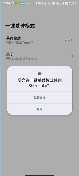 一键墓碑模式酷安版是一款实用的手机管理助手软件。借助这款安卓免费版的一键墓碑模式,你能把那些在后台持续耗电、自动重启的应用冻结起来,从而有效解决手机发热、卡顿、续航缩短等问题,让手机性能得到提升,运行更流畅。它最大的优势在于无需root权限,对新手用户格外友好。另外,开启墓碑模式的同时还能清理重复图片,不妨来体验一下吧。