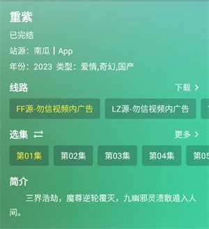 4、这里除了能够让用户在线播放,还能在这里体验线路视频播放,选择播放集数内容。