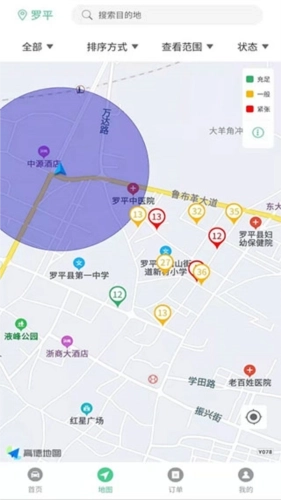 3、点击地图后,智慧罗平软件将依据你的当前位置完成定位,并搜索周边的停车位。