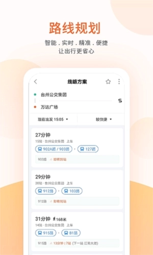 4、出行路线规划:输入起点和终点,即可轻松获取多种换乘方案;