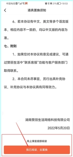 4、将页面滑动至底部,稍作等待(几秒即可),然后点击“我已阅读,去置换”按钮。
