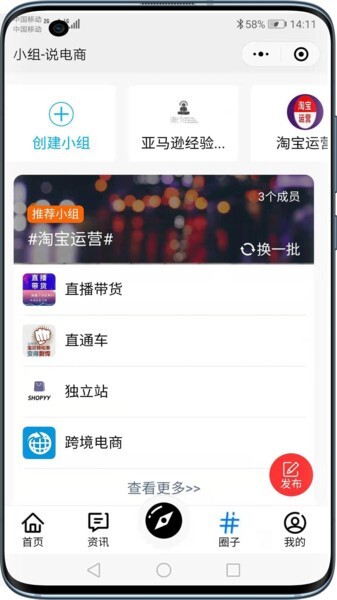 这是一个汇聚了众多电商平台从业者的交流空间,这里有海量的小组用户,你可以自由关注并参与聊天互动;还有特色视频和丰富话题,助你轻松开启搭讪交流,拓展专属人脉圈。感兴趣的朋友不妨来看看!
