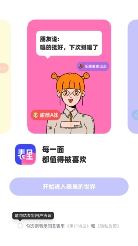表里是厦门歆焕科技有限公司推出的一款社交聊天辅助软件,它既能助力用户结识更多朋友,也能引导用户更深入地探索自我——每一面的自己都值得被喜爱。依托“表面”与“里面”的双重维度,软件仅为用户推荐可能感兴趣的人。在这里,用户不仅能体验更简洁、优质的社交互动,还能倾诉那些在生活中无处安放的秘密。