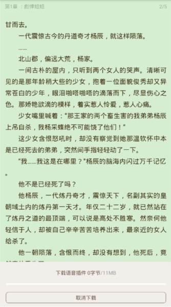 3、用户进入小说的阅读页面,点击中间的位置