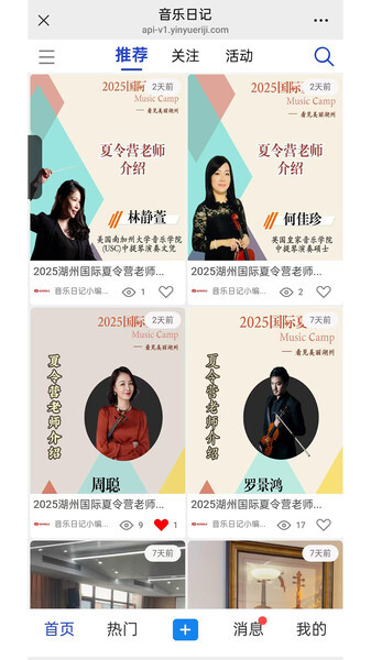 3、用户在平台上结识朋友并互相关注后,就能清晰直观地了解对方的最新情况,比如每天演奏的音乐、练习的方式等,就像音乐人的专属社交圈一样。